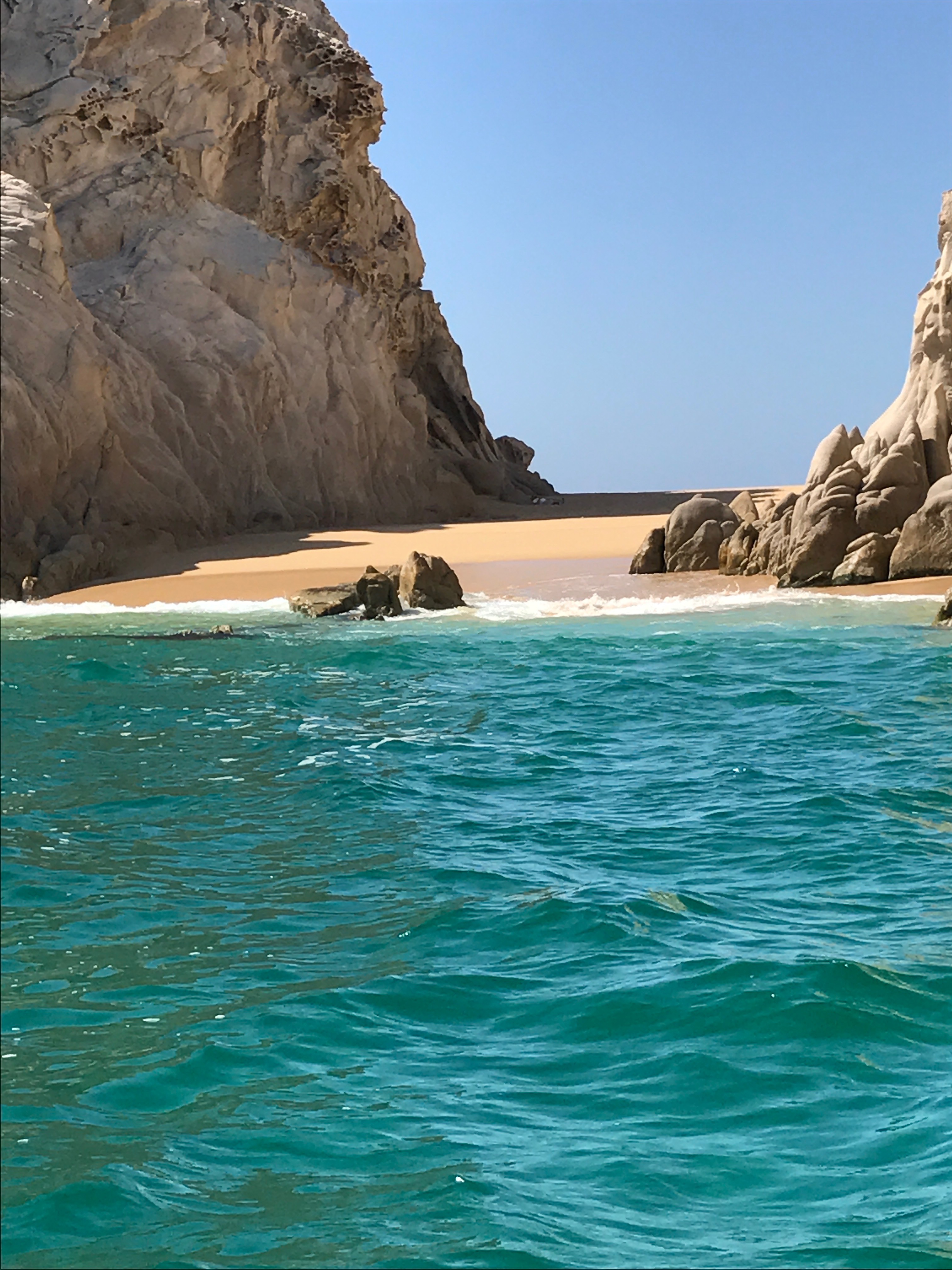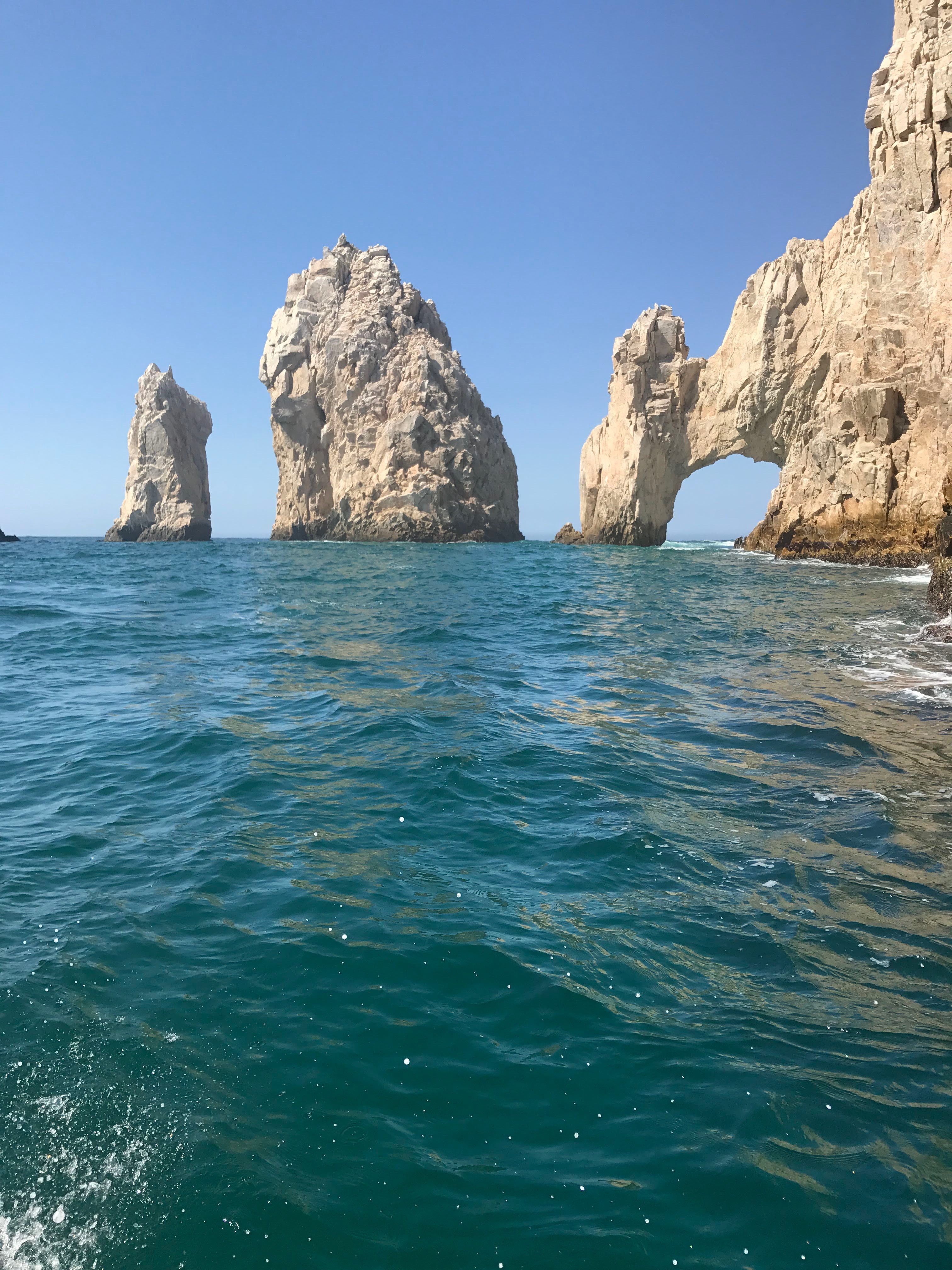 After our massages we decided to go and check out the Arch of Cabo San Lucas . For those of you who donβt know what that is , donβt worry because i wasnβt aware either lol . But the Arch is a rock formation located at the end of the Baja Peninsula. Reminiscent of another world, the arch of Cabois where the Sea of Cortez meets the Pacific Ocean, but one of the surprising facts about Cabo San Lucas is that the arch was there before the sea. Around 30 million years, the shifting of tectonic plates and geographical processes began to split the worldβs second longest peninsula from the rest of Mexico. At only around five million years old, the Sea of Cortez seems young compared to the Cabo San Lucas arch. However, it was during these years that wind, erosion, and waves carved out the arch we see today. The best part of going to see the Arch up close and personal was the glass bottom boat ride . You can ride those boats π£ββοΈ out to the beautiful arch while also being able to see the marine life underneath the boat .